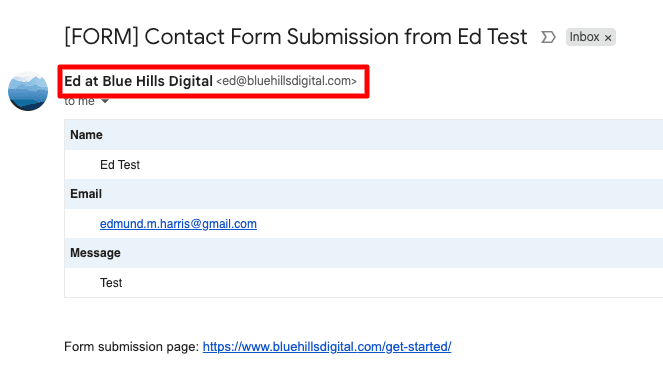 For example, on the Blue Hills Digital website, I use a service called Postmark to send emails originating from the website, and those emails come from my ed@bluehillsdigital.com email address.